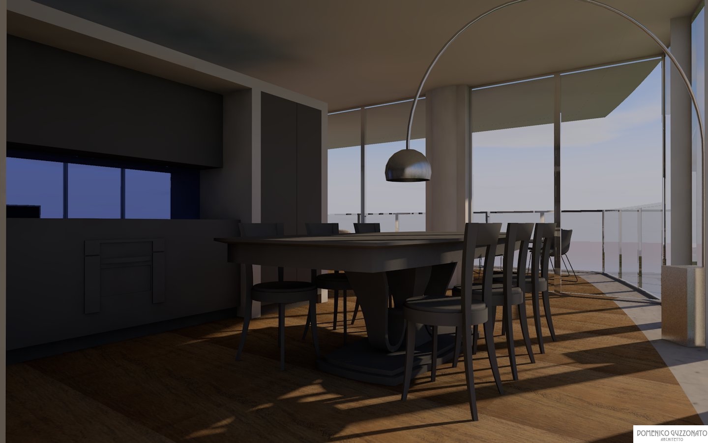 Il piano primo č racchiuso da una curtain wall perimetrale vetrata che valorizza il rapporto di fruibilitā visiva degli spazi esterni collinari. Il vano di accesso trasversale divide le due zone principali, giorno e notte.